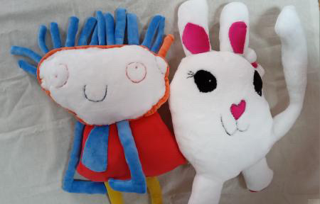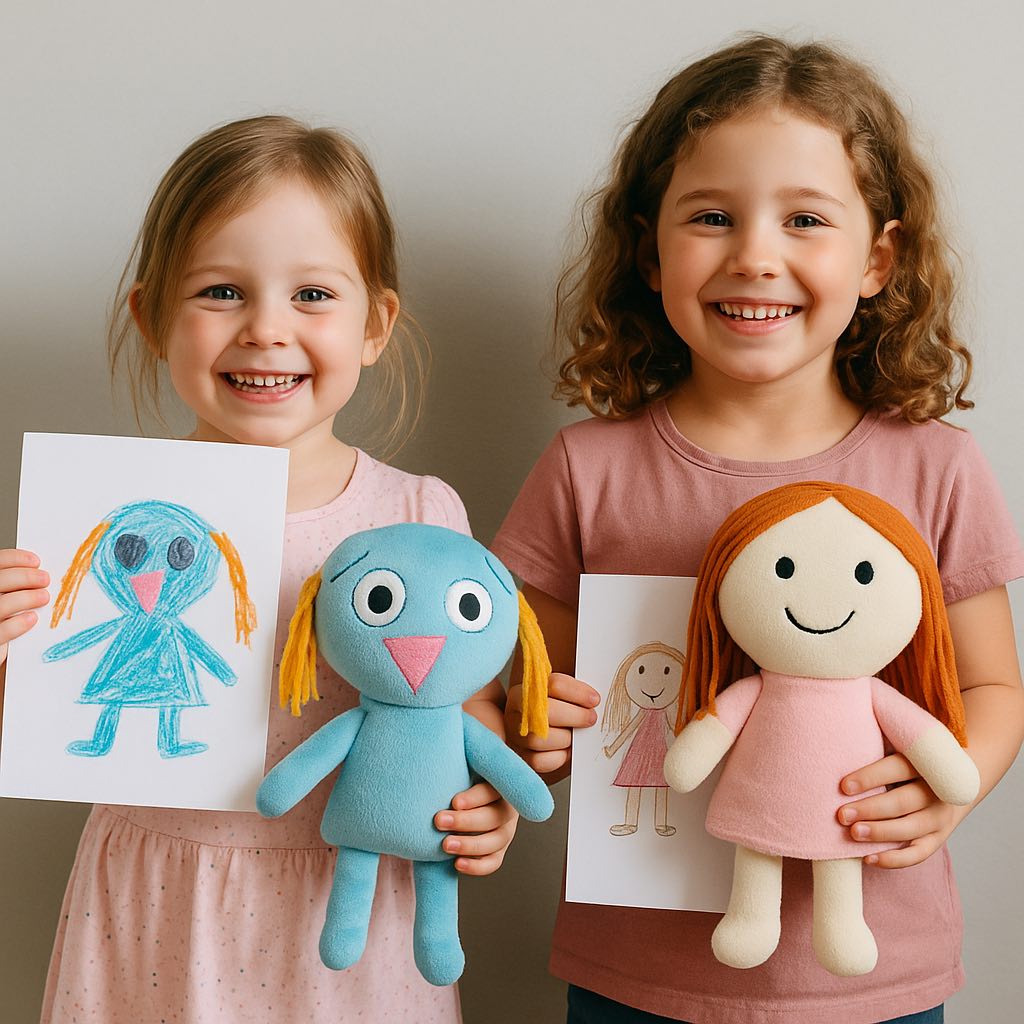 Cada muñeco es una obra única, confeccionada a partir del dibujo que nos envía cada familia, respetando los colores, formas y detalles originales que los chicos imaginaron.